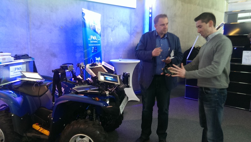 Jürgen Antl von PWA Electronic GmbH im Gespräch mit einem Teilnehmer bzgl. Einbaulösungen. PWA ist Panasonic Service Partner und TOUGHBOOK Competence Center.