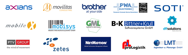 | 10:45 | Vorstellung der ausstellenden Partner akquinet, axians, brother, Lovians, Mircosoft, mobileX, mibsys, movilitas, Rhode & Schwarz, PTV Group, PWA, SOTI, TIS, Wessendorf |