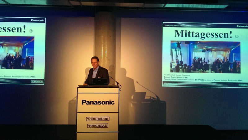 Die Veranstaltung wird von Mark Thorne, Business Unit Head Europa Panasonic Computer Product Solutions und Sascha Mannel, Vertriebsleiter D-A-CH Panasonic Computer Product Solutions eröffnet. In zwei Sätzen stellen sich die Aussteller den Teilnehmern vor. Schnell weiß so jeder, ob er später noch ein Gespräch mit Augmensys, Brother, Crispy Mountain, GML, mobileX, Movilitas, Neo Solutions oder PWA electronic suchen muss.